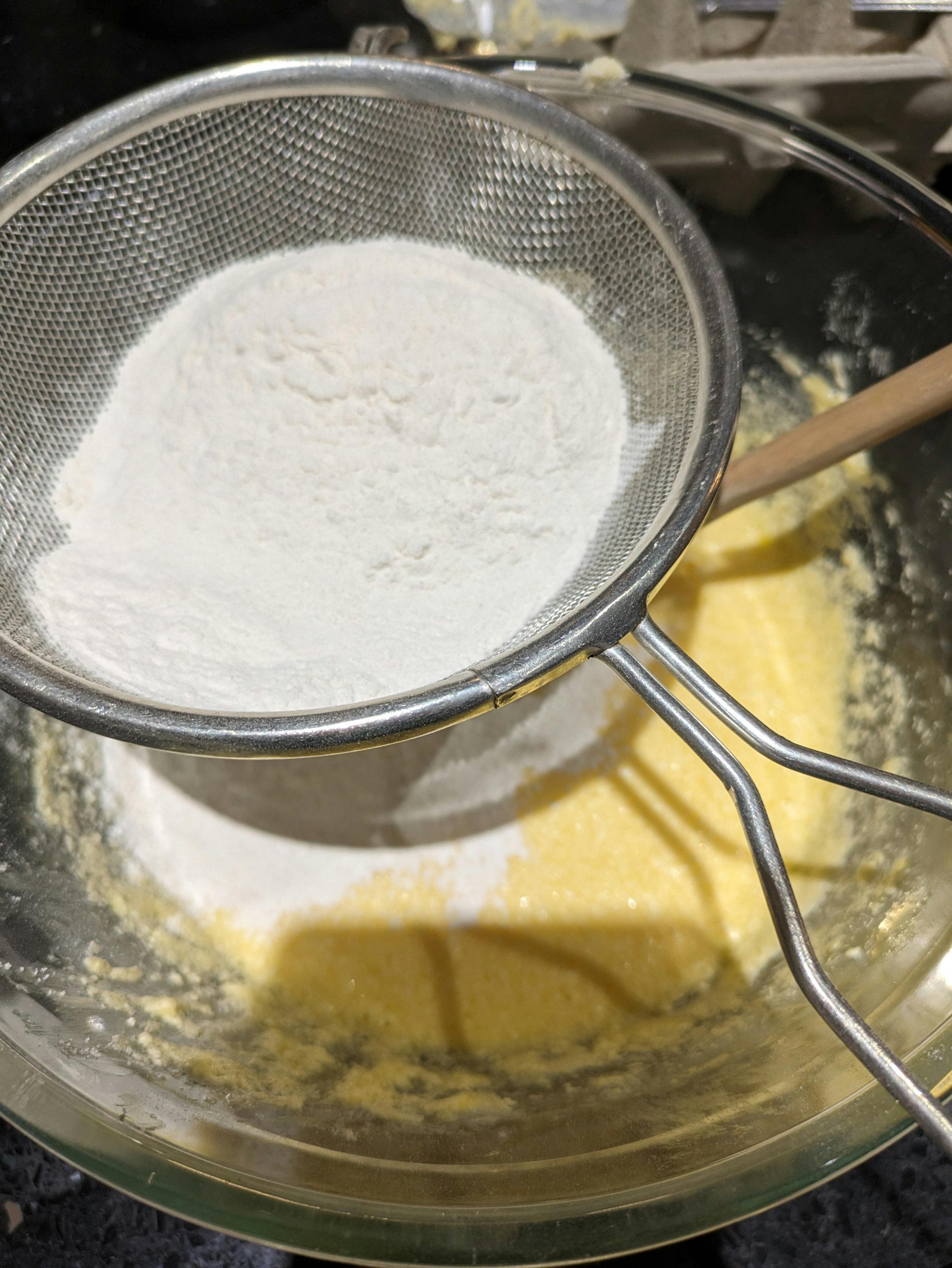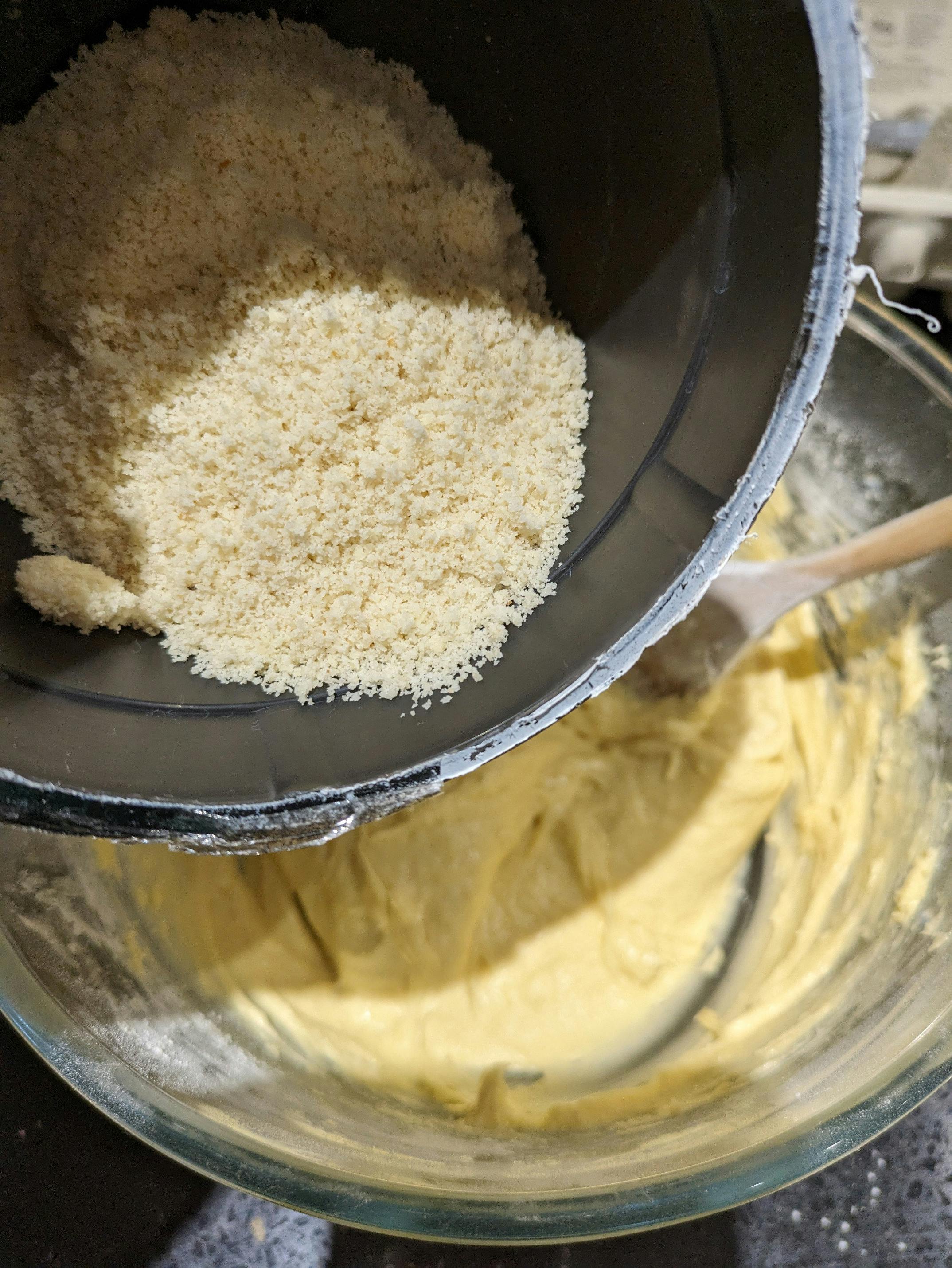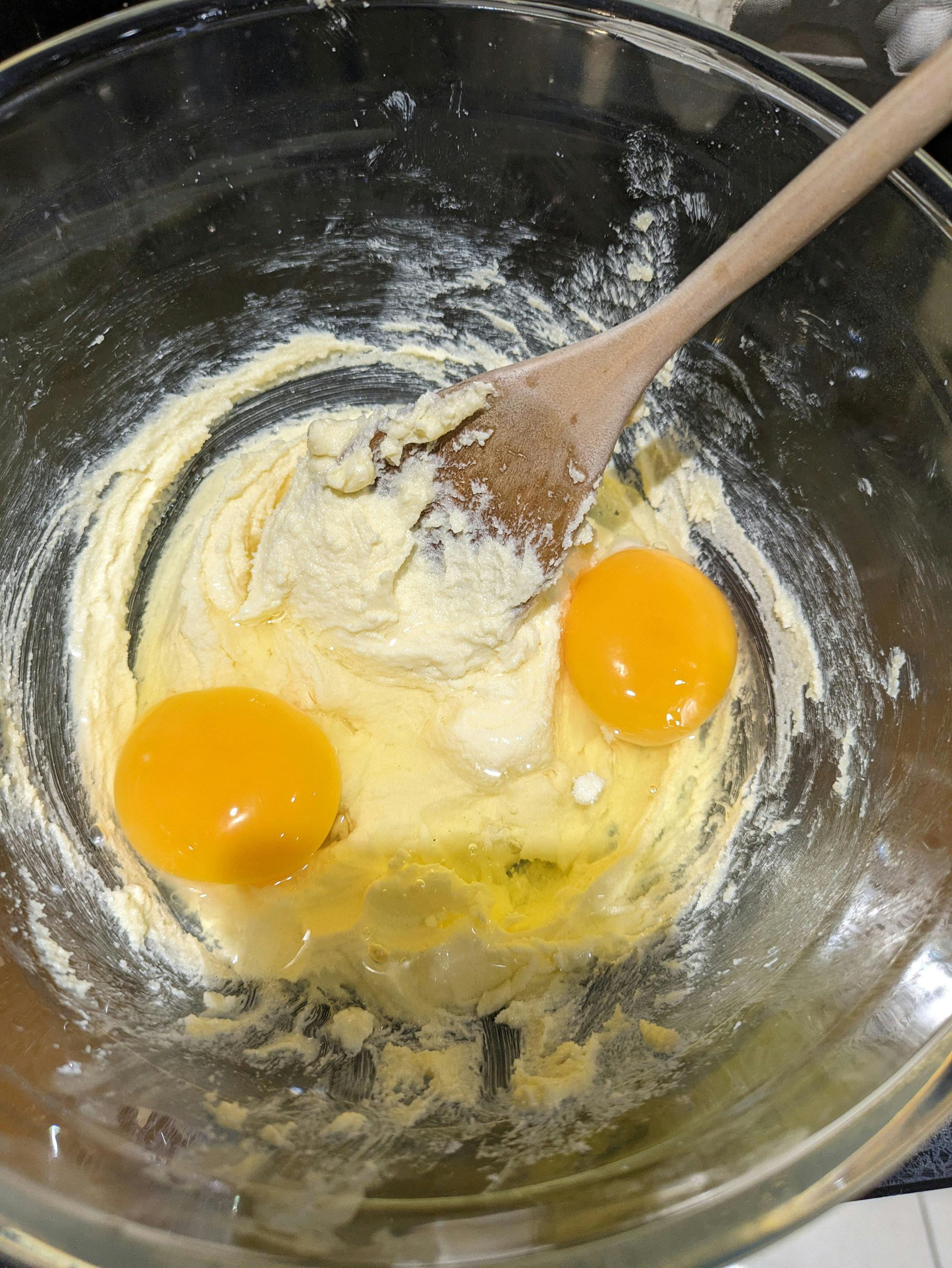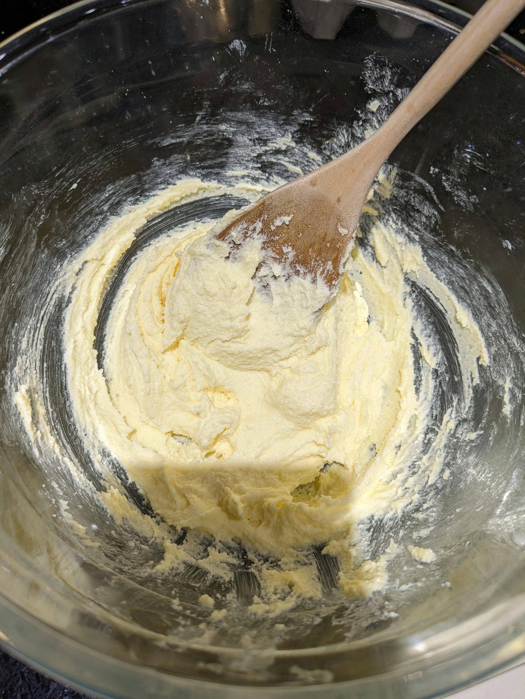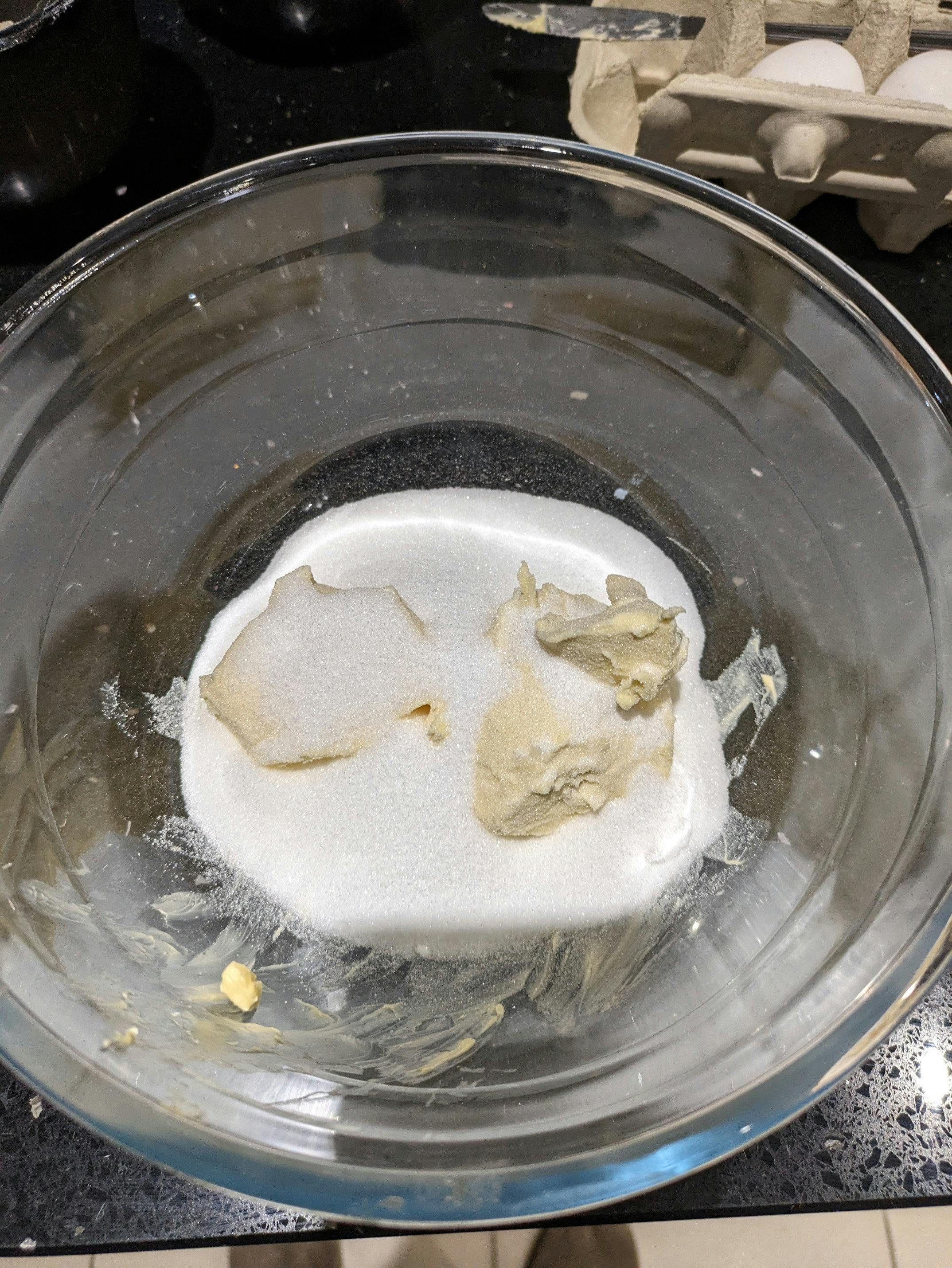 Spoon the mixture into the tin so that 2 of the sections have the pink mixture and the other 2 have the non-coloured mixture, and level
