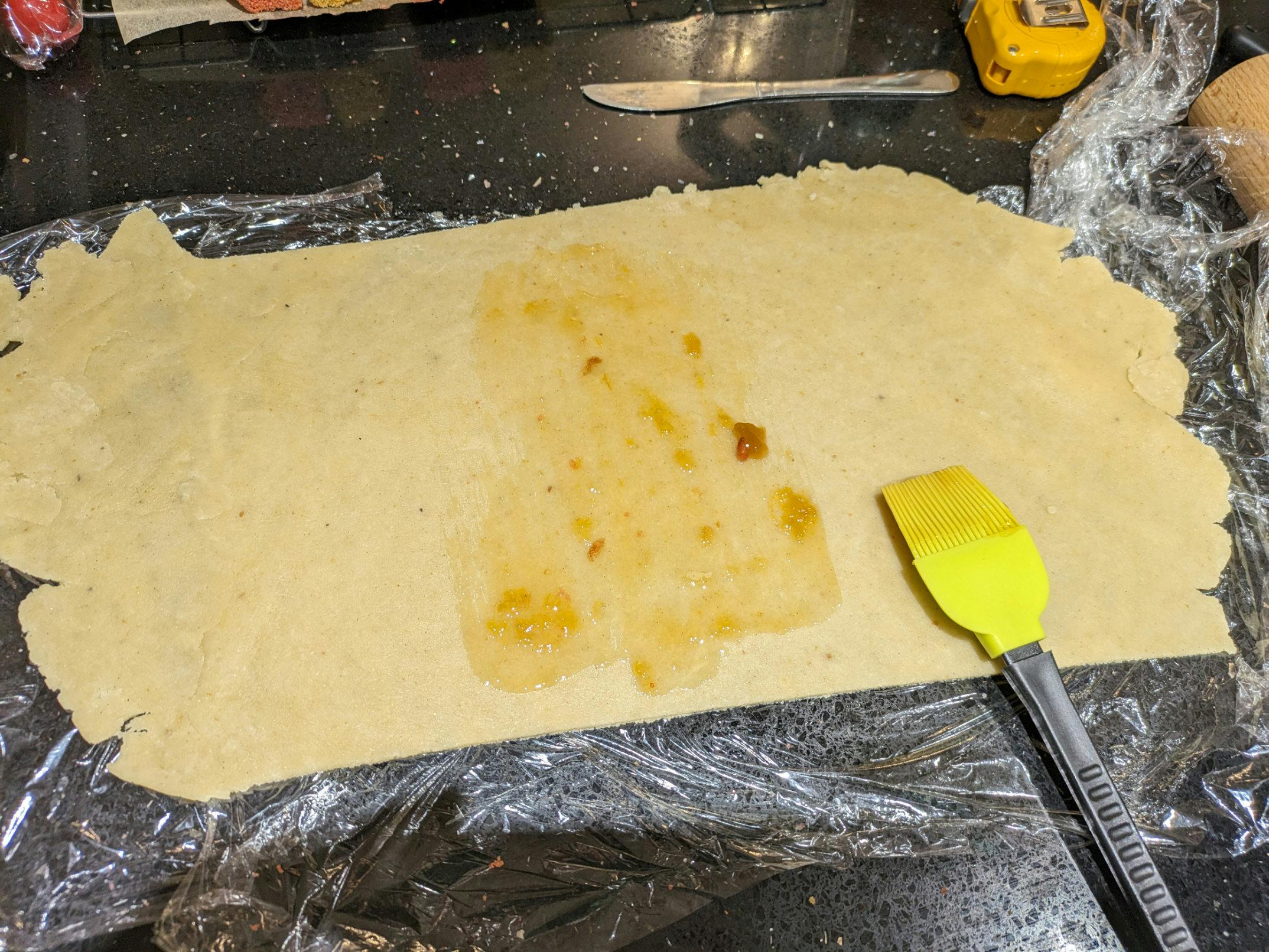 Assemble the remaining sections on top, brushing with the apricot jam, to make a chequerboard pattern