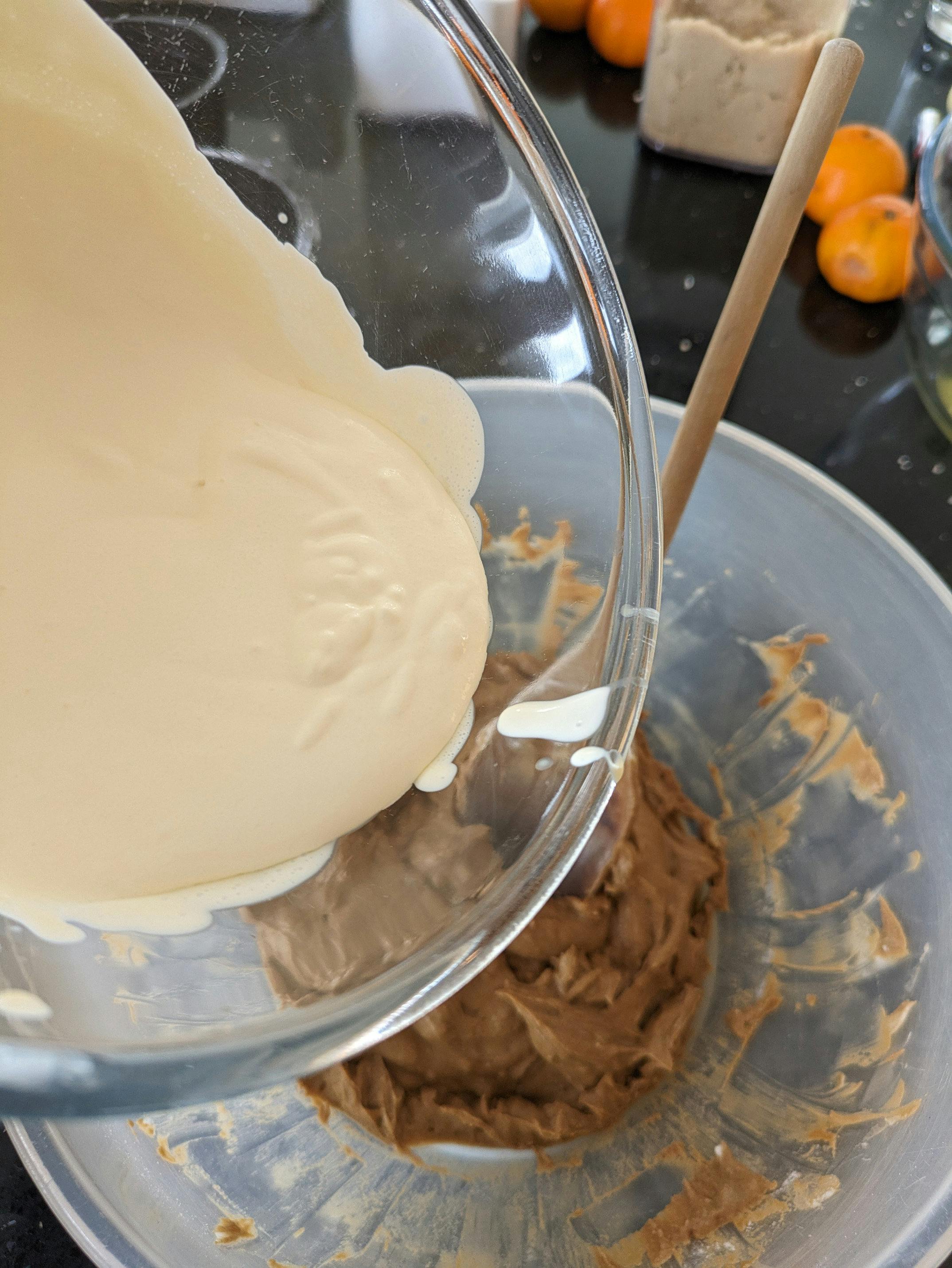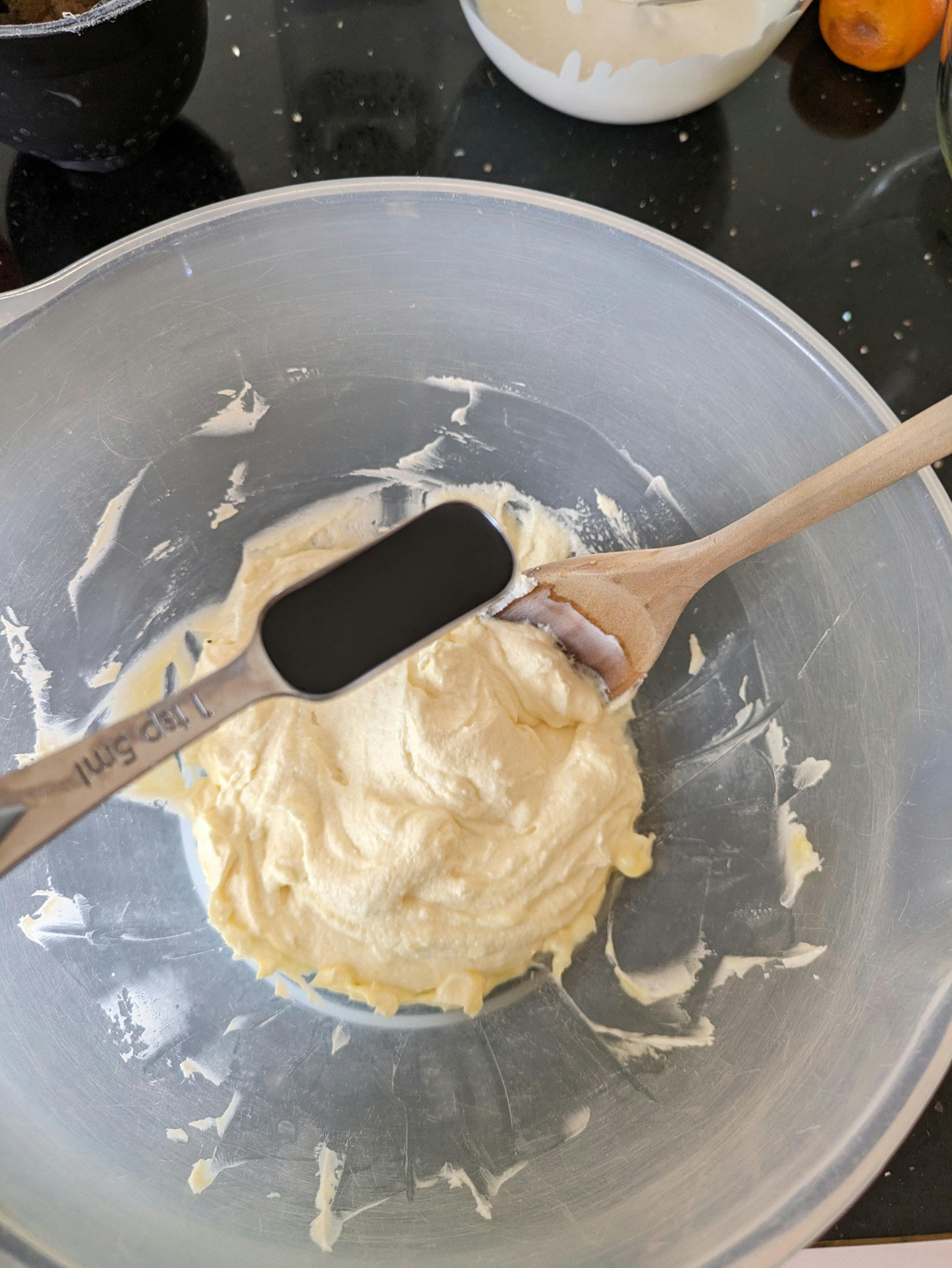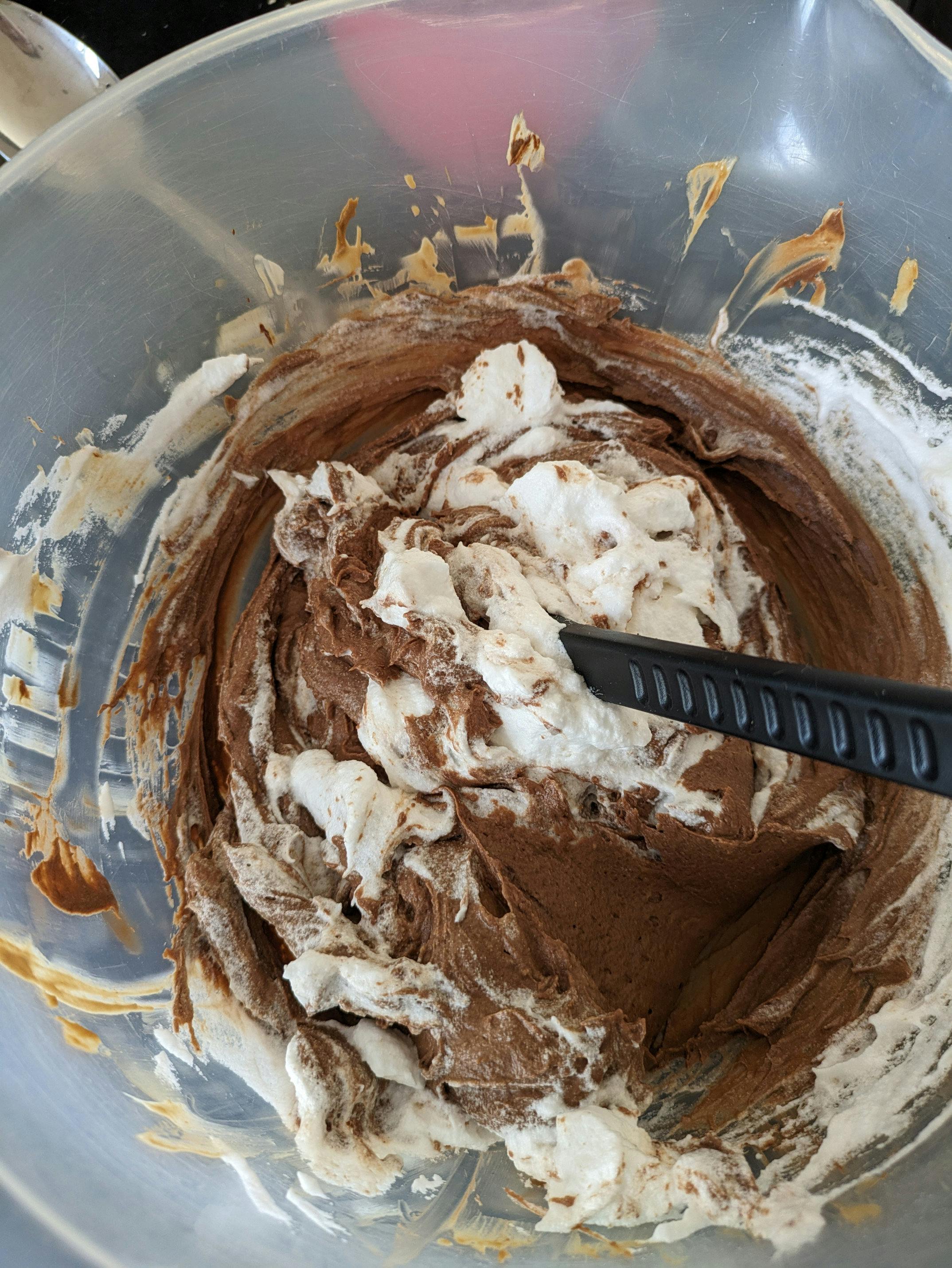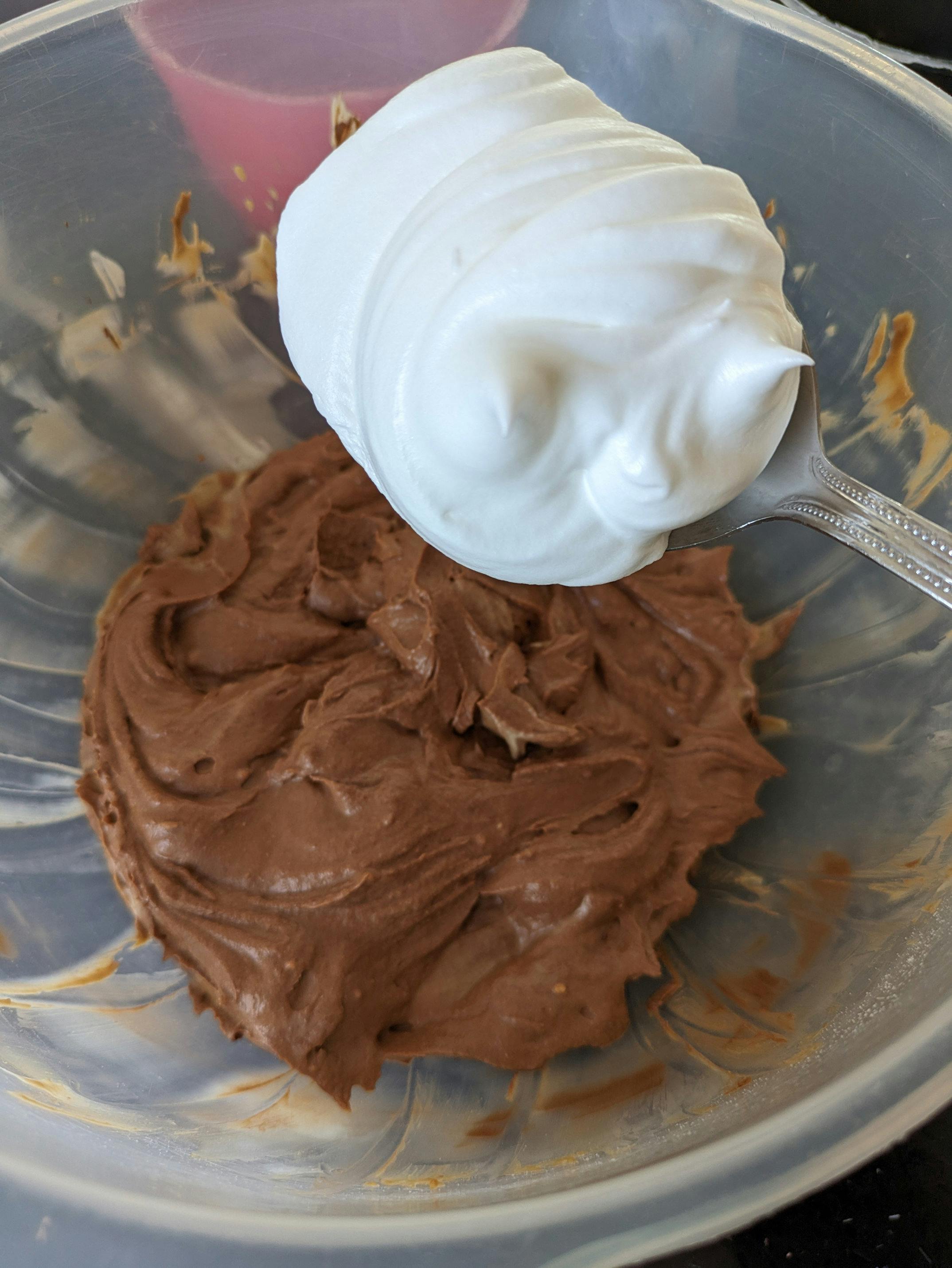 Fold the eggs white into the cheese chocolate mixture, adding a few spoonfuls at a time