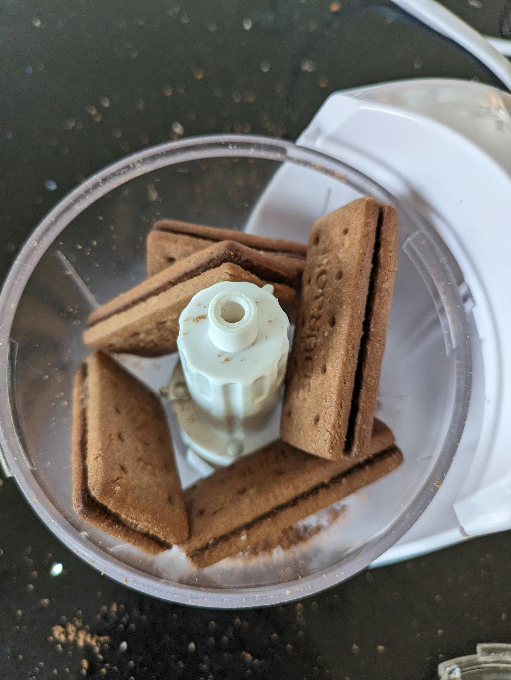 Create biscuit crumbs, either use a mini-chopper or bash with a rolling pin