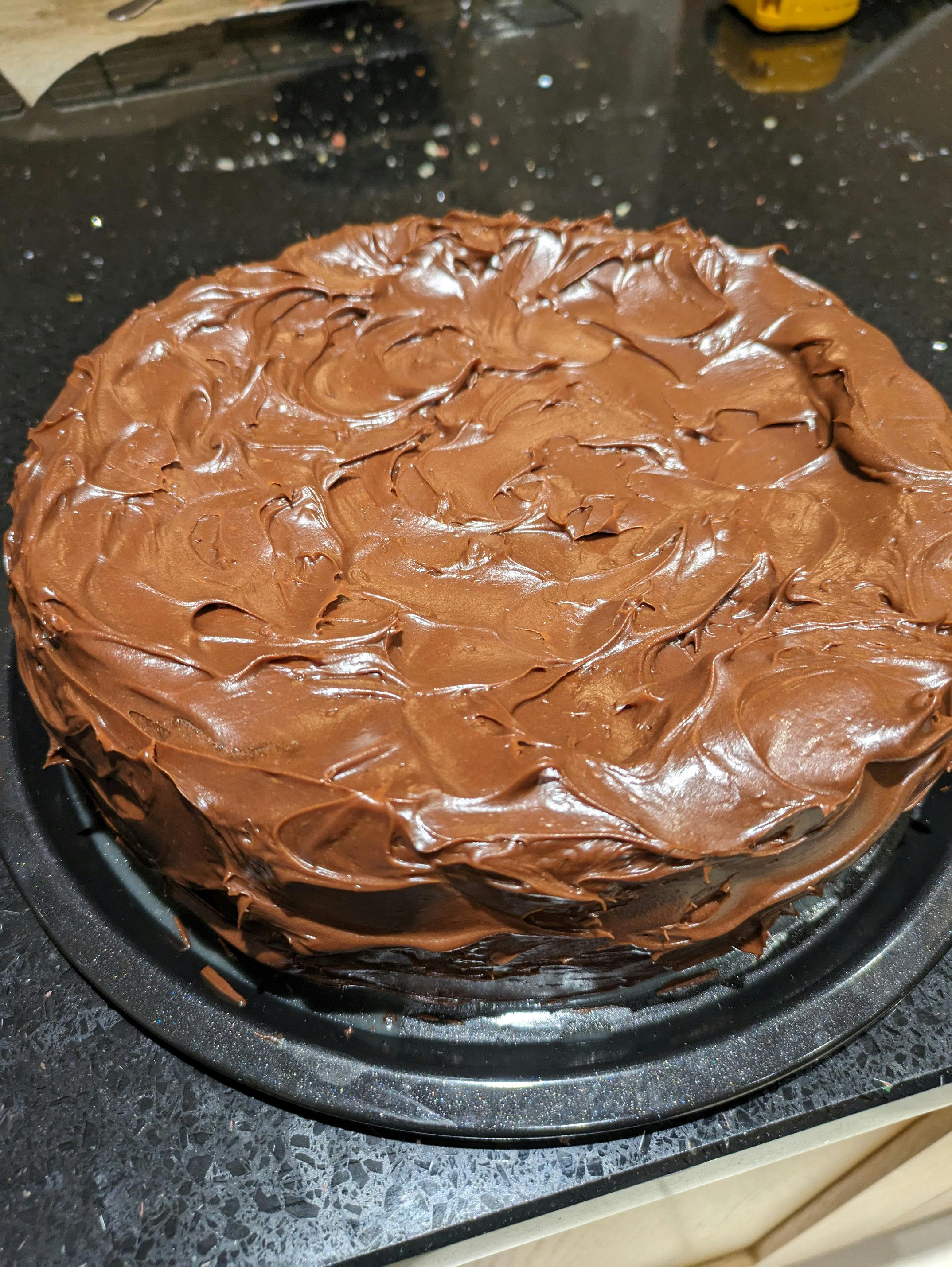 To make the topping, melt the chocolate and butter/margarine in a bain-marie. Meanwhile melt the sugar and water in another saucepan.