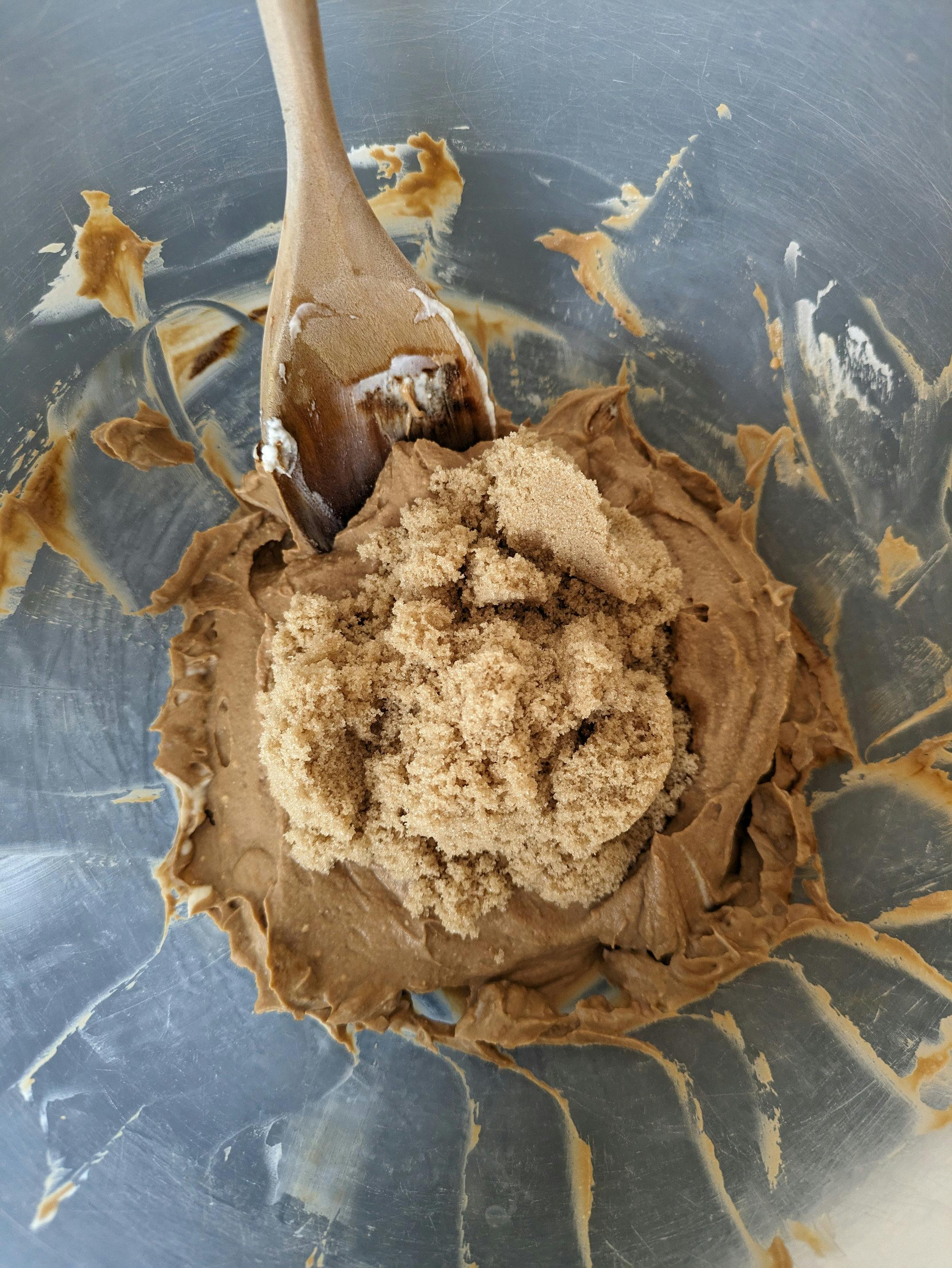 Soften the cheese in a large mixing bowl. Beat in the egg yolks, gravy browning, soft brown sugar, flour, soured cream and melted chocolate