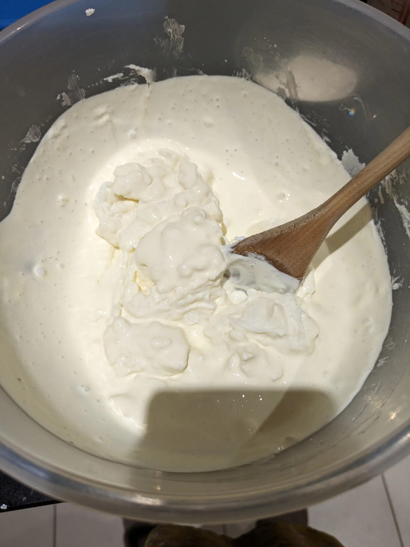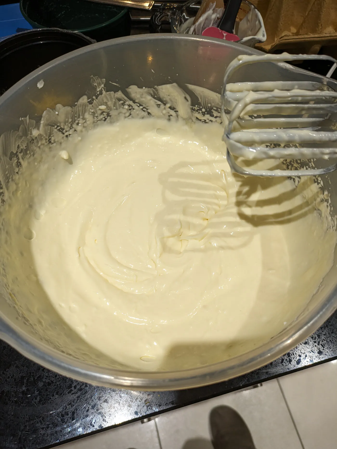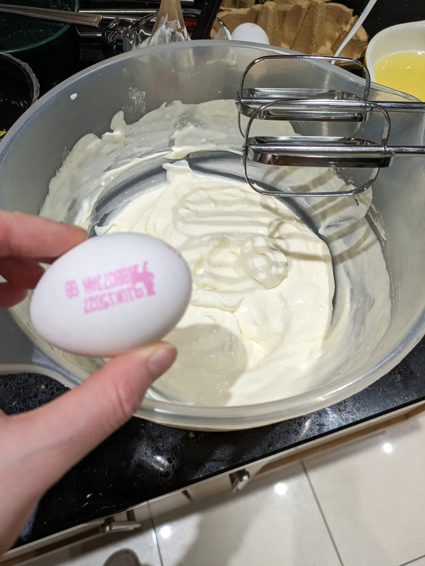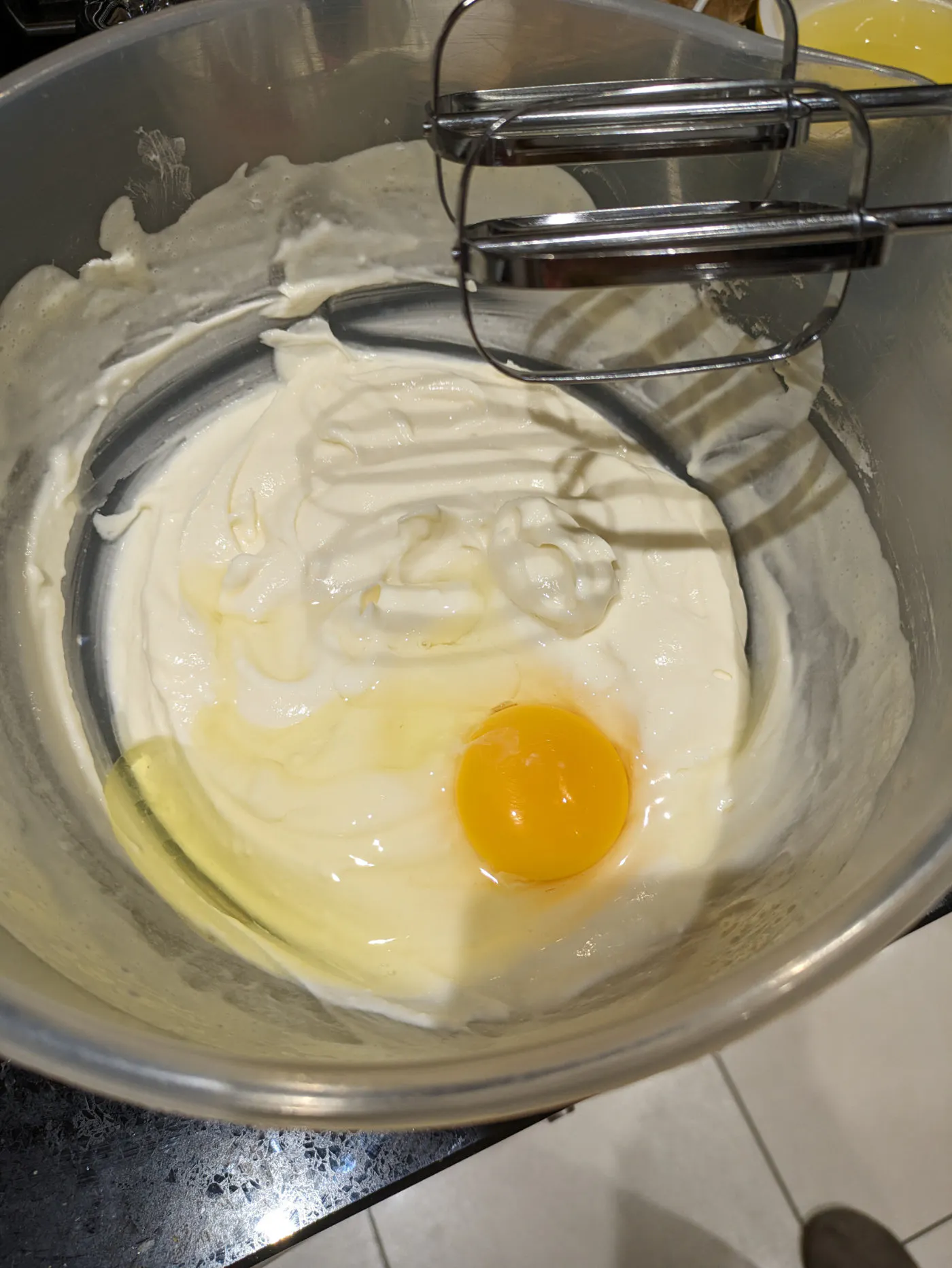 Beat in the eggs one at a time