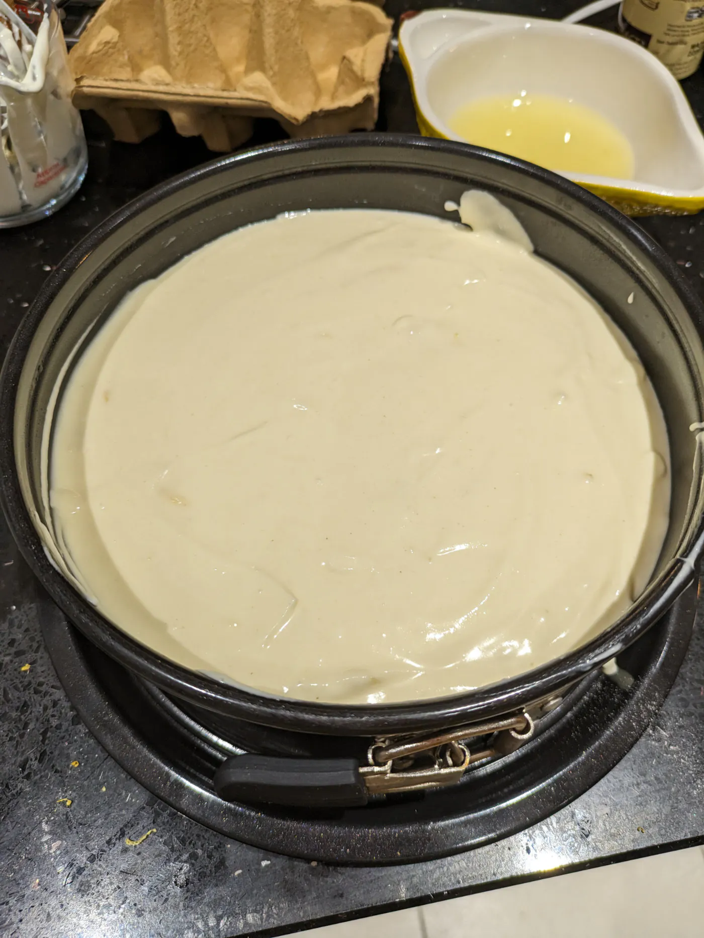 Bake for 50-60 mins, it should have a slight wobble when ready