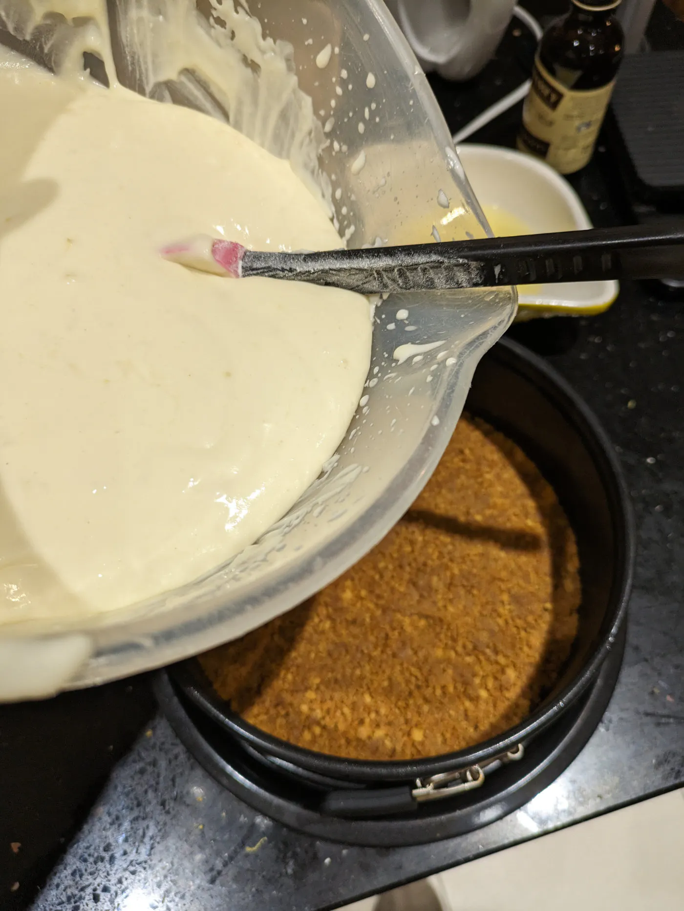 Pour the mixture onto the base in the tin