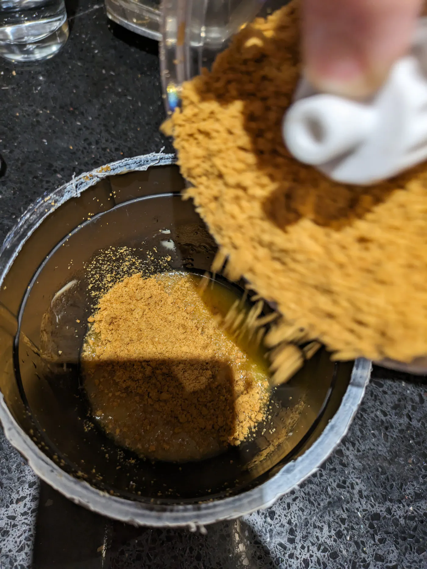 Melt the butter and mix in with the biscuit crumbs