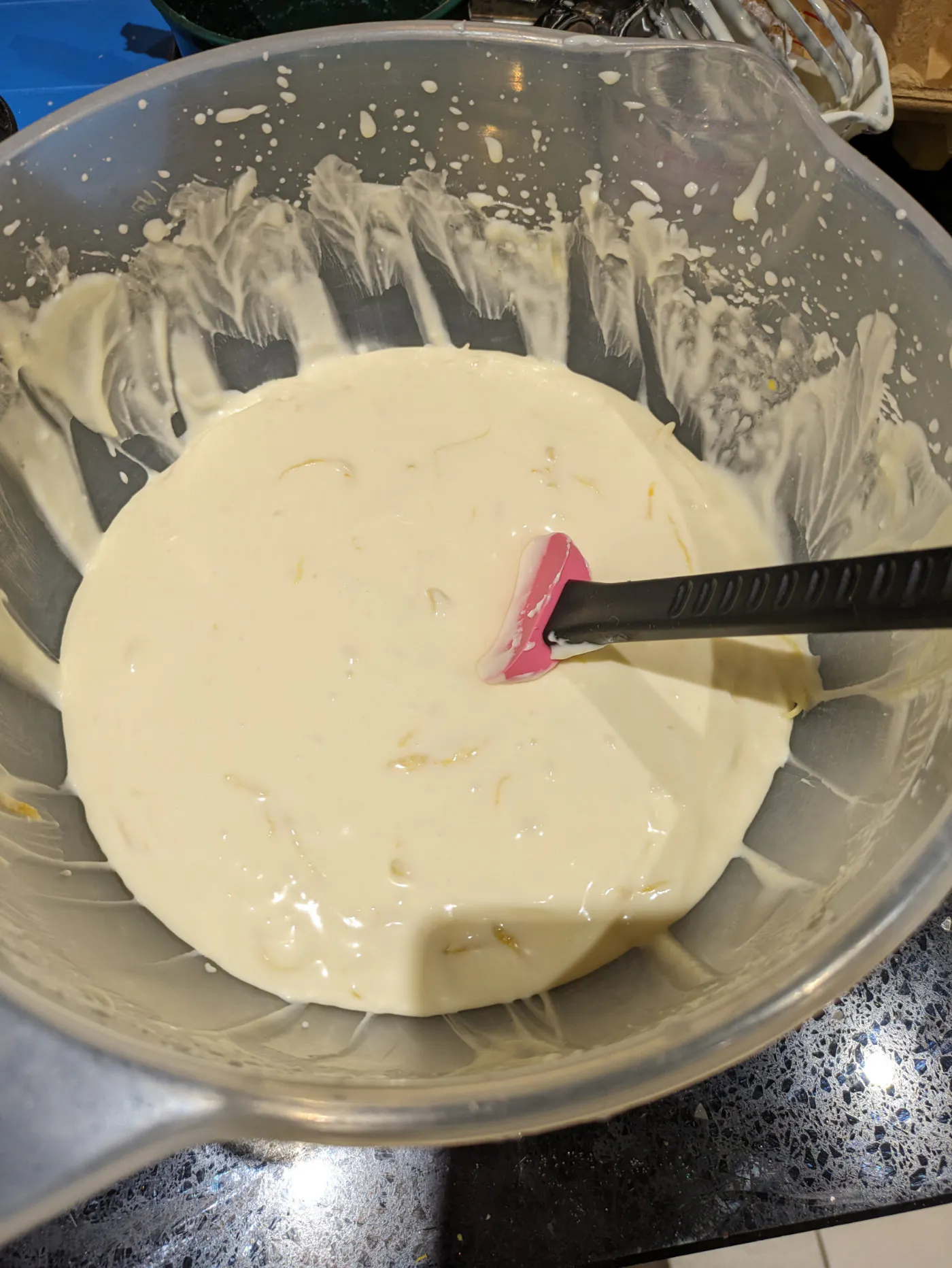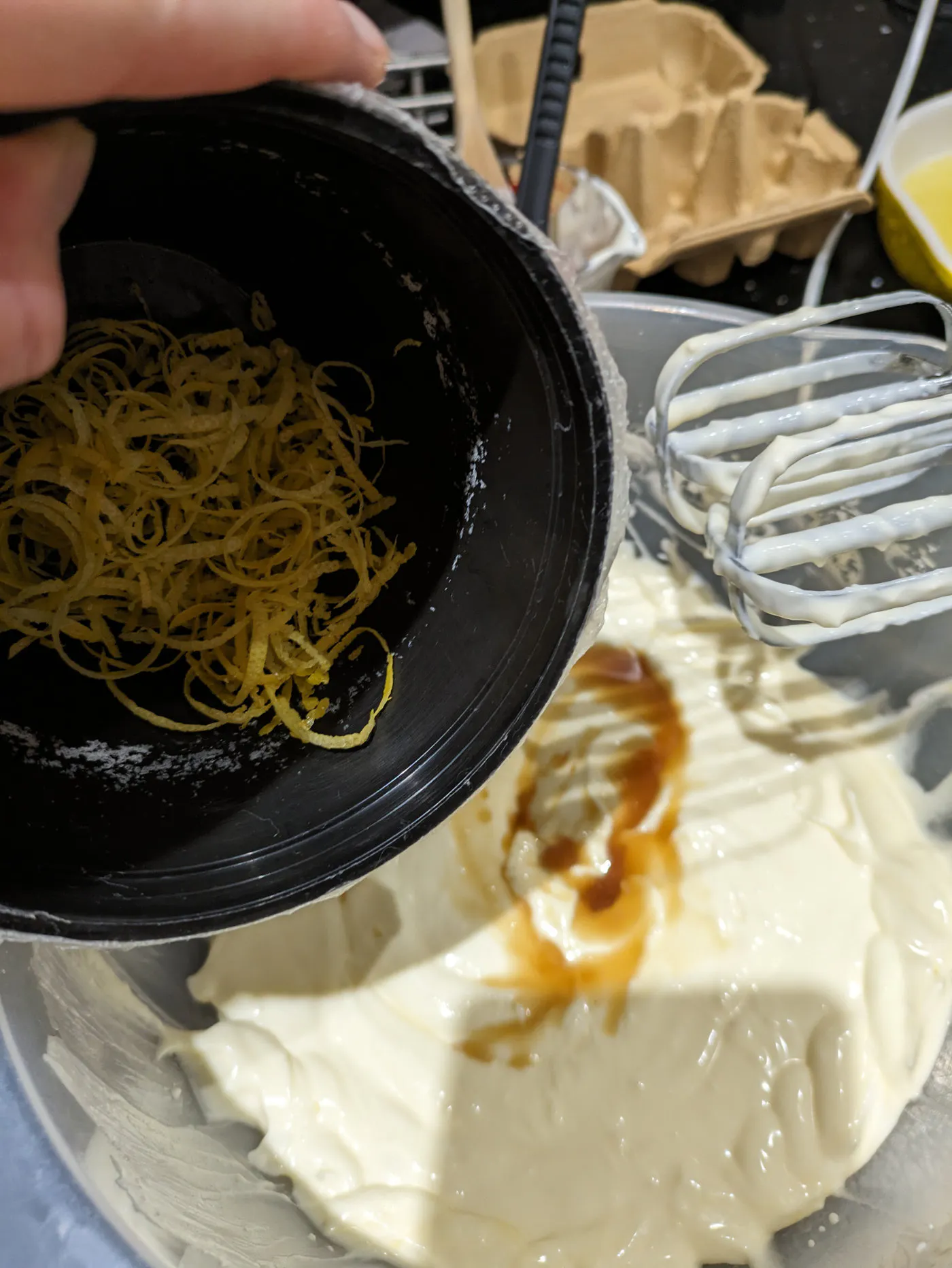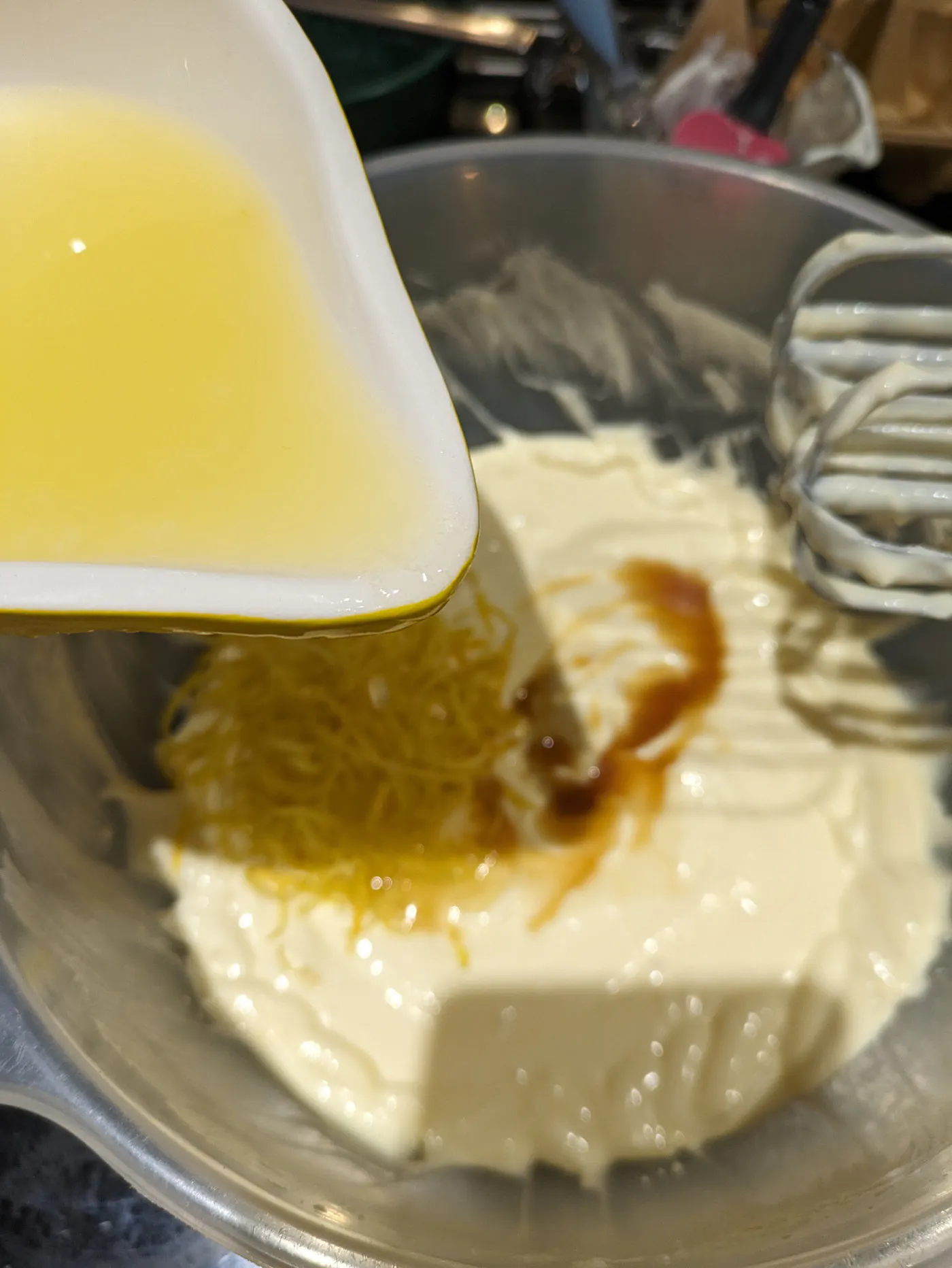 Then add in the vanilla extract, lemon zest and juice